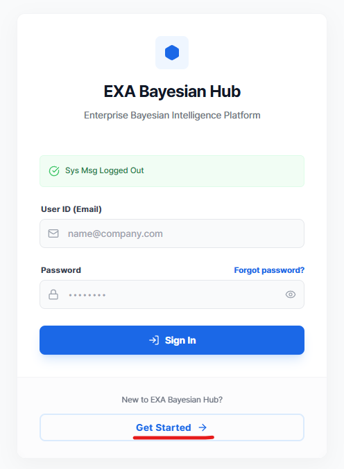 To use EXAWin, you need to sign up for the EXA Bayesian Platform. This document covers the entire process from Sign Up → Email Verification → Sign In.